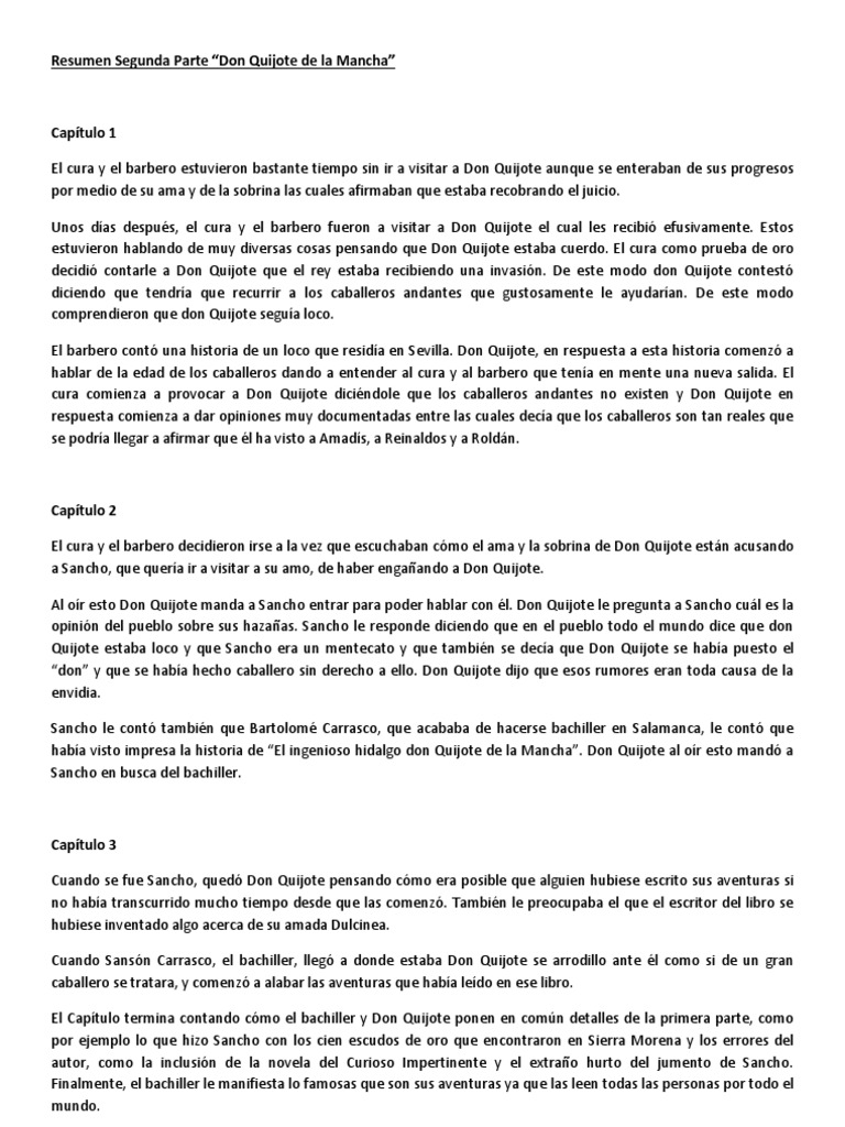 Resumen Por Capitulos De Don Quijote De La Mancha Segunda Parte Leslie Wattpad