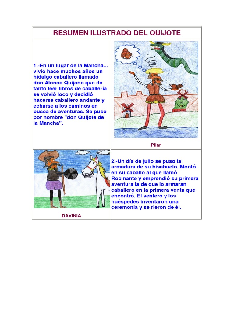Resumen Ilustrado Del Quijote Don Quijote Miguel De Cervantes