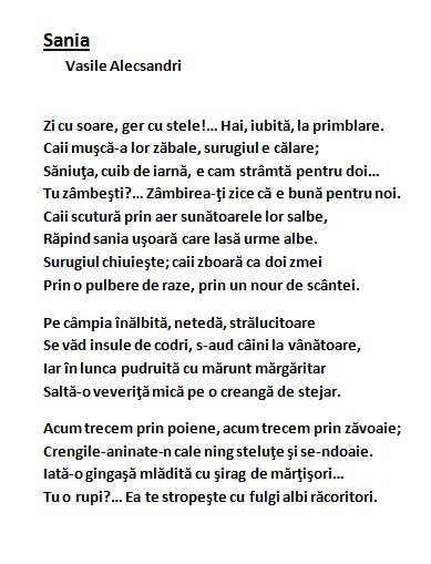 Care Eate Tema Poeziei Sania De Vasile Alecsandri Brainly Ro