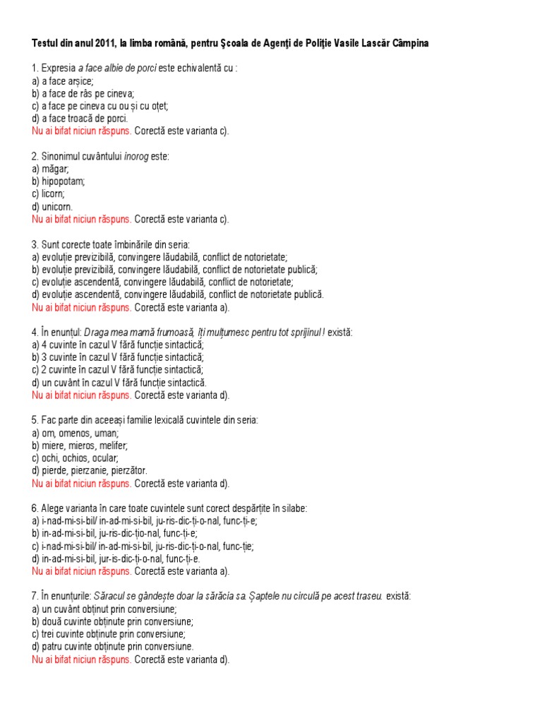 Subiecte La Limba Romană De Nivel Gimnazial La Scoala De Agenţi De Poliţie Campina Ce Variante De Antonim Pentru Obligatoriu Au Avut De Ales Candidaţii