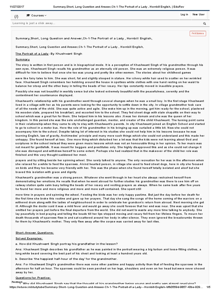 Cbse Class 11 English Lesson The Portrait Of A Lady Summary Explanation Difficult Words